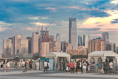 7月27日,二沙島藝術公園,市民正準備在此登海心橋,珠江邊熙熙攘攘。