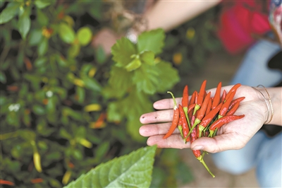 剛摘下來的新鮮辣椒,承載收獲的喜悅。