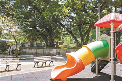 聯(lián)豐村的古榕樹旁修建了長椅、乒乓球桌、兒童滑梯等娛樂設(shè)施,供村民使用。