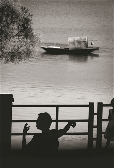 偌大的城市成為演出的背景。樹木、江水、云朵,是天然的舞臺布景;路燈、圍欄、船只,是別具一格的舞臺裝置。它們既是剪影的邊框,也是舞臺的配角,兢兢業(yè)業(yè)地配合主角表演。人與城,景與影,渾然一體,彼此交融。