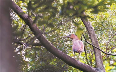 據(jù)介紹,黑冠鳽選擇筑巢的地方,首先要確保蟲子等食物充足,公園這里的池塘草地都能滿足;黑冠鳽性羞怯而膽小,行動極為謹慎,公園生態(tài)環(huán)境優(yōu)美,且人員較少,十分適合黑冠鳽棲息筑巢。