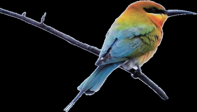 此外,它們還是色彩搭配方面的“專家”。栗喉蜂虎有明顯的熱帶鳥類羽毛艷麗的特征:喉部是栗紅色的,過眼紋是黑色,擁有天生的眼線,翅膀和背部是翠綠色的,藍色的尾翼更增添了一分美麗。飛行時,栗喉蜂虎翅膀下的羽毛是橙黃色的。在陽光的照射下,它們?nèi)黹W爍著彩虹般的艷麗光澤。