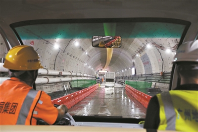 建設者正在海珠灣隧道深處日夜不停地作業。