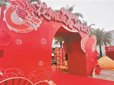 “之前就聽(tīng)說(shuō)過(guò)詩(shī)意花市了,一直很期待,知曉活動(dòng)開(kāi)始后,一大早就全家過(guò)來(lái)打卡。”醒目的迎春牌樓前,有不少市民拍全家福合影留念,今年花都迎春牌樓外觀設(shè)計(jì)采用了花都古建筑祠堂屋頂概念,展現(xiàn)古香古色的傳統(tǒng)氛圍。主體支撐采用了云龍纏柱的形象,體現(xiàn)龍年和吉祥的意義。左右對(duì)聯(lián)將請(qǐng)花都區(qū)書(shū)法大家手寫(xiě)制作,體現(xiàn)花都詩(shī)詞之鄉(xiāng)的美譽(yù)。