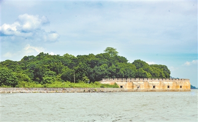 橫擋島位于珠江口虎門水道,面積只有約0.05平方公里,分為上、下橫擋島,兩者相距約650米。特殊的地理位置使這個彈丸之地成為扼守廣州的咽喉之地。民族英雄關(guān)天培、林則徐都曾在這里“鐵索攔江”,抵御侵略者。