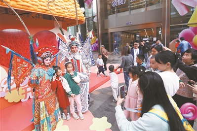 11月23日下午,廣州粵劇院的幾位青年演員在劇院化好妝后,走到馬路對(duì)面領(lǐng)展廣場北面的平川夜巷,上演了精彩的粵劇快閃《花好月圓》《穆桂英招親》。一位來自華南師范大學(xué)三年級(jí)的女生著漢服前來,“我知道羊城粵劇節(jié)期間有粵劇嘉年華,今天過來玩,逛了非遺市集,集滿了章,領(lǐng)了粵劇文創(chuàng)帆布袋,還和參加快閃的武生、武旦合影,好開心!讓我對(duì)粵劇、對(duì)傳統(tǒng)文化更加喜歡了!”