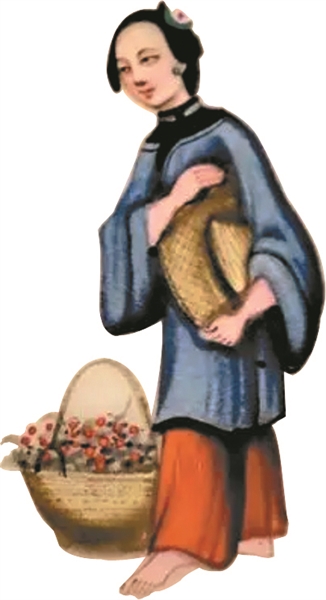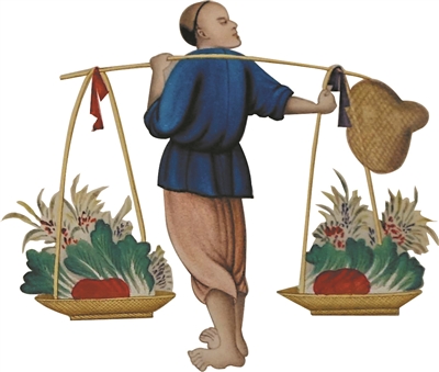 這幅清代外銷畫描繪了清代小販走街串巷,販賣蔬菜花卉的場景。