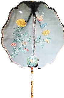 清代產自廣州的外銷扇,繪上了朵朵菊花。