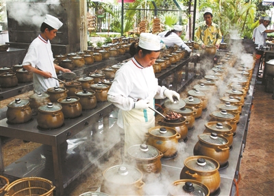廣州靚湯作為粵菜的代表,也是與嶺南文化海納百川的包容性一脈相承?!皬V州新健湯茶食品”創始人張新健對廣州靚湯情有獨鐘。他說,廣州人的湯煲里,有主料有配料,有鮮貨有干貨,有食材有藥材,可謂天下湯料融于一煲。