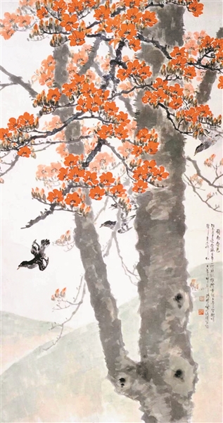 談到嶺南畫派前輩,陳金章表示,“回頭看,三位老師留給我的不是技法,而是教我怎么對著生活去畫畫,這個道理并不容易悟出來。”陳金章創作了《棗園春》《秋聲》《南方的森林》《報春圖》等優秀作品。他的創作也不斷創新,如《報春圖》就開創了嶺南畫派畫木棉的新手法,將傳統上視為花鳥題材的木棉引入國畫山水創作題材。