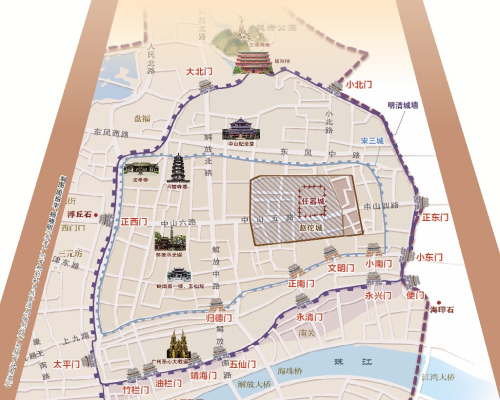 大東門、西門口、小北路、朝天路、大南路、文明路、靖海路……曾經都是廣州城門所在地