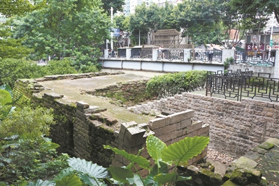 周末,記者從地鐵西門口站走到中山六路與人民路相交處西南側,一抬眼,一片蔥蘢掩映處,便是西門口甕城遺址。美人蕉、木瓜樹、木棉樹、鐵樹等點綴其間,如果不是拐角處一塊黑色石碑上寫著的“西城門甕城遺址”字樣提醒人們,它有著一段不平凡的過去,或會有人以為那只是一個不對外開放的公園。
