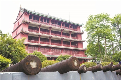 鎮海樓雄踞在明代城墻之上。