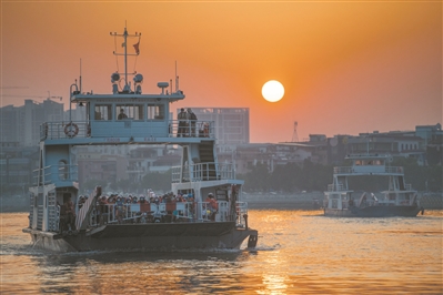 隨著過江橋梁、隧道、道路、地鐵的興建按下“加速鍵”,輪渡過江需求減少,珠江夜游隨即悄然興起。為此,原本只是代步工具的輪渡船白天擺渡,晚上“兼職”當游船。“當時的輪渡船有八九百個客位,船很大。船艙內都沒有安裝玻璃窗和空調,四周通透,全憑自然江風吹拂。”譚偉明說。以前,廣州塔往東的這段航線燈光稀少,黑漆漆一片,珠江新城就是珠江夜游的終點。如今,城市天際線沿著珠江向東延伸,游船駛過獵德大橋,來到珠江琶洲段,仿佛穿過科技感十足的都市森林。