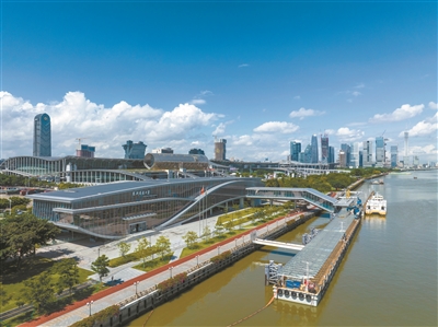 其實,港澳客運碼頭選址琶洲,也是為了能給廣交會參展商帶來更多便利。以往每年廣交會,外商往往會搭乘飛機到香港國際機場,再通過陸路到廣州。琶洲港澳客運碼頭開通后,客人在香港下機后可以直接坐船來琶洲,甚至行李都可以到了琶洲再拿。從內河航運到“海天聯運”, 琶洲港澳客運碼頭不僅填補了中心城區水上跨境口岸的空白,實現粵港澳大灣區立體交通的無縫銜接。