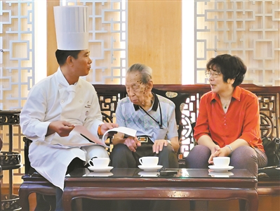 徐錦輝記得,創制每一道菜前,廚師團隊要先參照書本里的技法慢慢摸索烹飪方式、制作過程,經過反復討論和試驗,再完整演示一遍給老師傅看,請老師傅品嘗、點評,“推倒重來”在其間成為“家常便飯”。