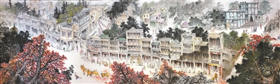 22米長卷《西關印記》由書畫名家朱永成、馬建忠、李卓琪聯袂完成,圖中部分展示了恩寧路騎樓街風情