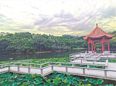 蓮花山也逐漸變為生態環境良好、樹木蔥蘢、四季繁花似錦的世外桃源,以“蓮峰觀海”入選新世紀羊城八景之一。這里每年春天都會舉辦桃花節,游客絡繹不絕。白鷺、夜鷺也來此“定居”。每天,晨曦或夕照下的蓮花湖風景宜人,天空中,鷺鳥齊飛;地面上,人們手持“長槍短炮”,拍攝鷺鳥的倩影。