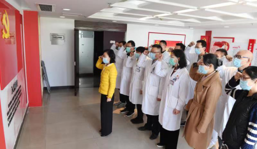 醫院黨委副書記、紀委書記賀小伶帶領臨時黨支部全體黨員重溫入黨誓詞