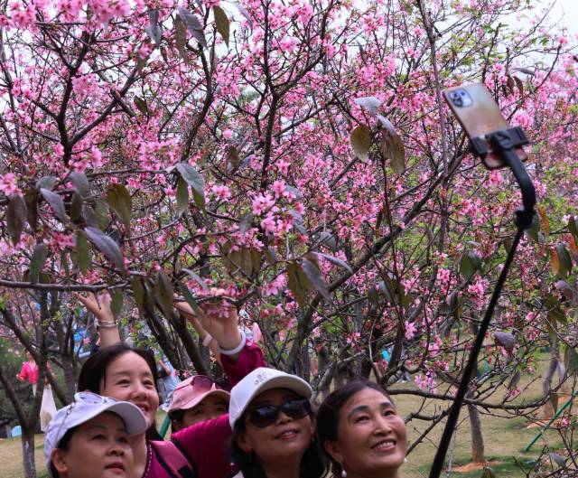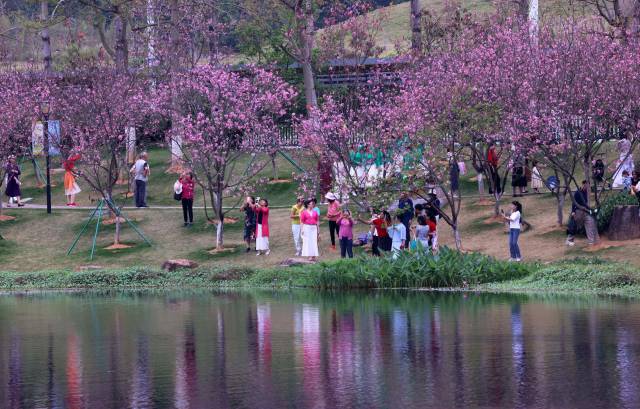 據(jù)創(chuàng)業(yè)公園黃埔區(qū)創(chuàng)業(yè)公園園長陳梨英介紹,環(huán)湖種植的櫻花是創(chuàng)業(yè)公園的一大特色。園內(nèi)約種植了620株櫻花,品種包括中國紅和廣州櫻。隨著廣州櫻的盛花期到來,創(chuàng)業(yè)公園的客流量也顯著增加。據(jù)統(tǒng)計,近期公園客流量比平時增加了七成。