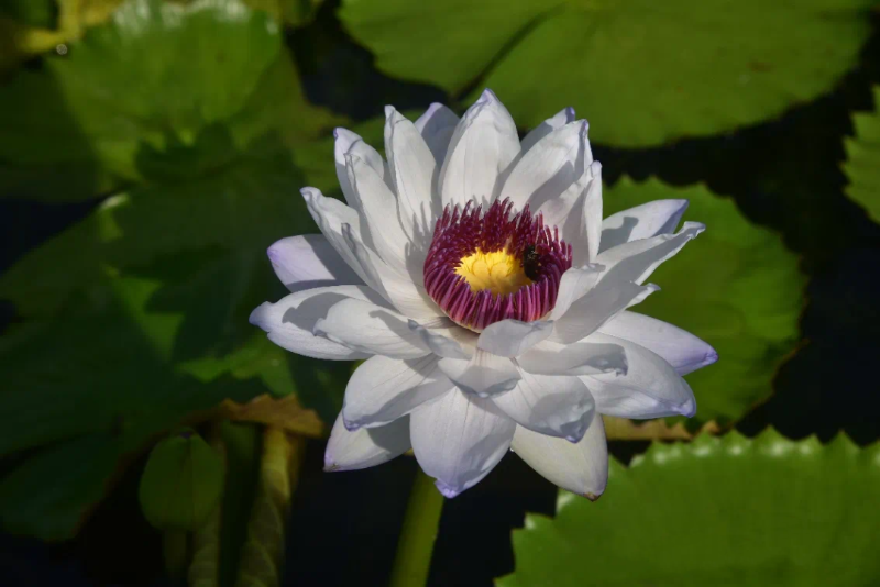 相對于耐寒睡蓮,熱帶睡蓮花色豐富,可以開出藍色、紫色、紅色、粉紅色,黃色等各色花。同時熱帶睡蓮株型相對較大,常常需要足夠的生長空間,才能開出最佳狀態。華南植物園通過構建不同大小和深度的睡蓮池以滿足各類熱帶睡蓮的充分生長需求,讓游客在這里欣賞到熱帶睡蓮各個品種的最美狀態。