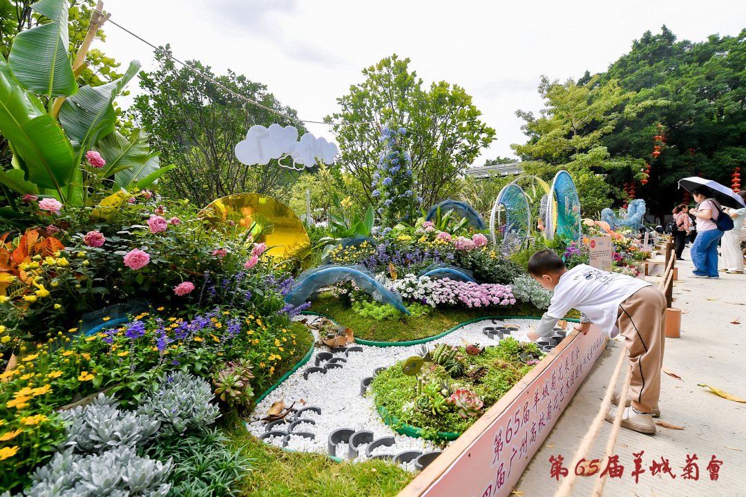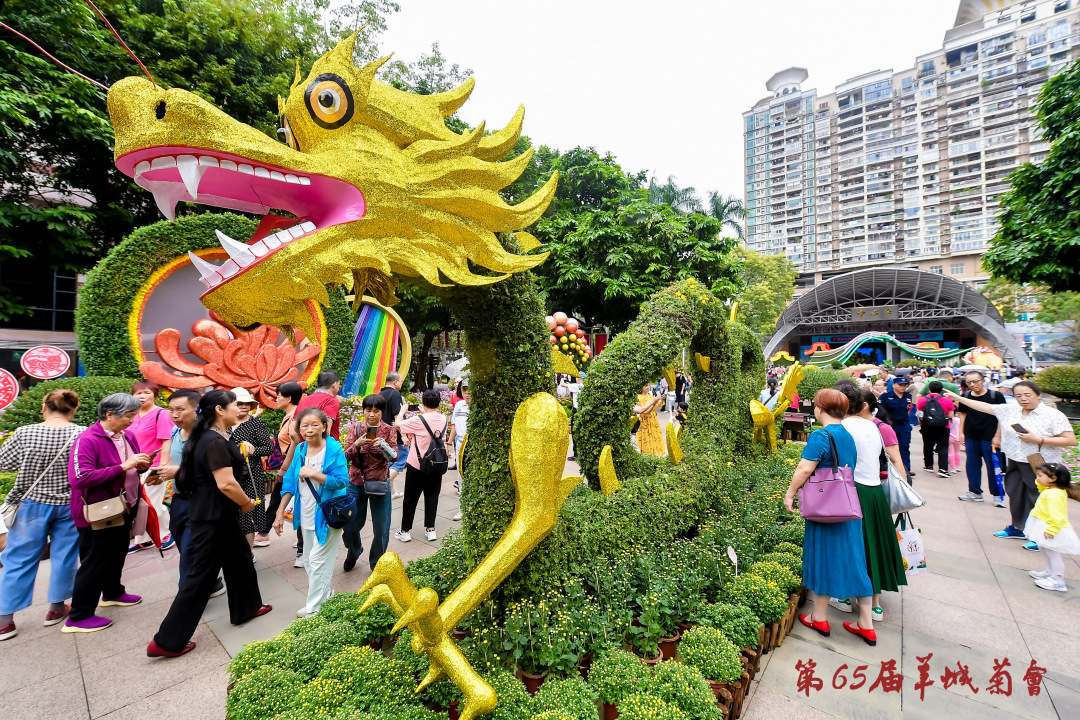 秋風送爽,一場花約如期而至。11月16日,廣州市歷史最悠久、規模最大、連續舉辦時間最長、影響力最大的專業菊花展覽——廣州文化公園第65屆羊城菊會開幕,持續至12月1日,免費向市民游客開放。今年,菊會以“活力灣區·新彩廣州”為主題精心打造,共設10個專題展區,布置11個主題景組,展出藝植造型菊60座、扎作造型菊40座、高校菊花藝術園圃42組,品種菊500多種,以及大立菊、懸崖菊、盆景菊、樹菊等藝菊1200多盆,各類盆菊、時花超過8萬盆。