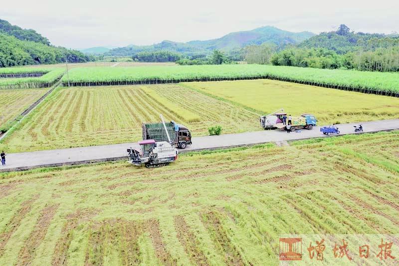 深秋時節,增城大地鋪展金色畫卷。廣袤田野間,沉甸甸的稻穗隨風輕擺,收割機正開足馬力穿梭作業,轟鳴聲中稻谷顆粒歸倉;農民們忙著裝運新糧,臉上洋溢著豐收的喜悅。