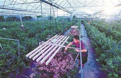 當光照不夠充足時,科研人員利用人造光源的照射,促進藍莓生長,增加藍莓甜度