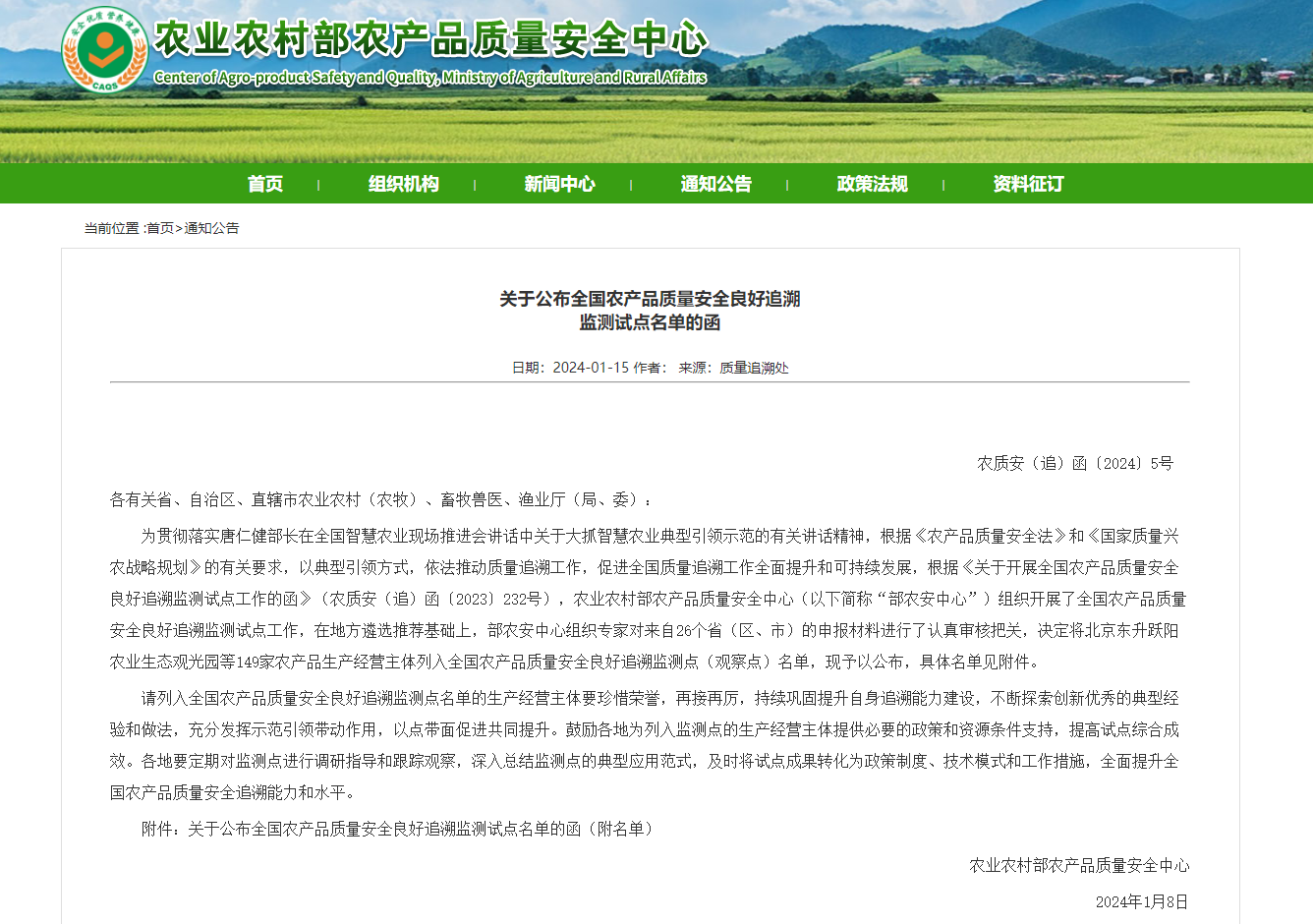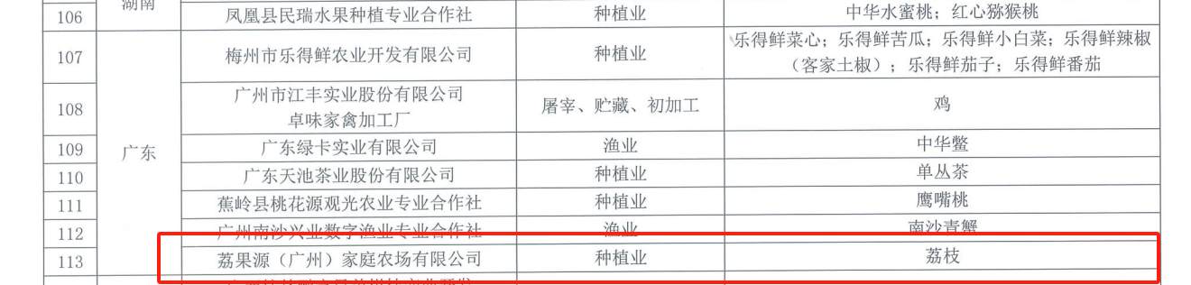 近日,農業農村部農產品質量安全中心公布了全國農產品質量安全良好追溯監測點名單,廣東省7家農產品生產經營主體金榜題名。其中,增城區的荔果源(廣州)家庭農場有限公司,是全國唯一一家以“荔枝”為主要農產品的農安良好追溯監測單位。