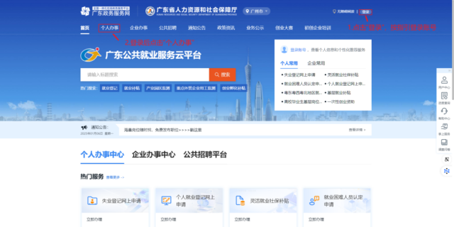 廣東公共就業服務云平臺網址:https://ggfw.hrss.gd.gov.cn/employment/internet/portal/#/home