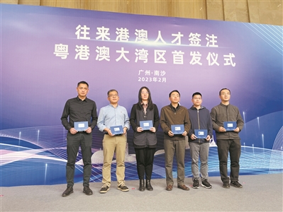 2月20日起,粵港澳大灣區內地城市試點實施往來港澳人才簽注政策,在粵港澳大灣區工作的內地6類人才可以申辦往來港澳人才簽注。新政實施首日,在廣州南沙舉行的首發儀式上,廣州市6名科研類人才飲得“頭啖湯”。