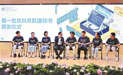 儀式上,來自佛山市南海區(qū)石門中學的徐畫從校長倪明選手中接過了錄取通知書,他是港科廣今年錄取的25名“直博班”學生之一。