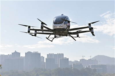 億航無人駕駛航空器全球商業(yè)載人首飛演示。
