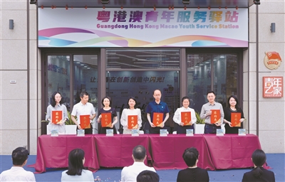 各代表簽署南沙區(qū)青年發(fā)展型城市街區(qū)聯(lián)盟單位合作協(xié)議。