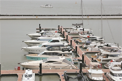 虎門橋下,防波堤圍繞著的紅色港池里停泊著一艘艘白色游艇,與碧海藍天相映成趣。港內共有352個水上泊位,120個干倉泊位,可停泊超級豪華游艇。已建成的南沙游艇會為廣東地區最大的游艇會,且具備符合國際標準的一流硬件設施。
