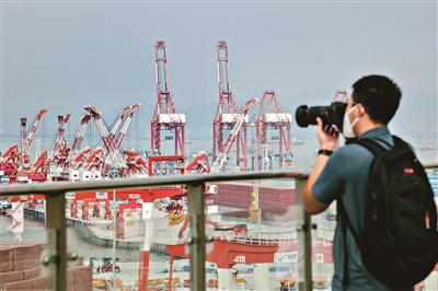 靈山島尖“鏡像世界”盡顯黑科技 龍穴島自動化碼頭一片繁忙
