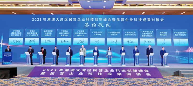 2021粵港澳大灣區民營企業科技創新峰會暨民營企業科技成果對接會上,11家企業簽約落戶白云。