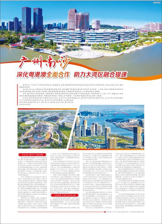 2019年2月18日,《粵港澳大灣區發展規劃綱要》發布,南沙被賦予粵港澳全面合作示范區定位和任務。三年來,南沙以粵港澳合作深化促大灣區融合提速,經濟實力躍上新臺階,創新發展動能更加強勁,與港澳合作走深走實,門戶樞紐功能日益增強。
