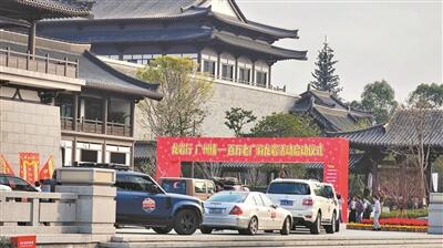 12日上午,近百臺自駕車輛齊聚廣州文化館新館門前。