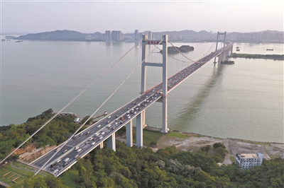 虎門大橋曾是珠江口東西兩岸唯一的跨海大橋,車流量居高不下,遠超設計通行能力的每天8萬車次。如今橫跨珠江的交通選擇日益增多,虎門大橋的通行壓力已有所緩解。