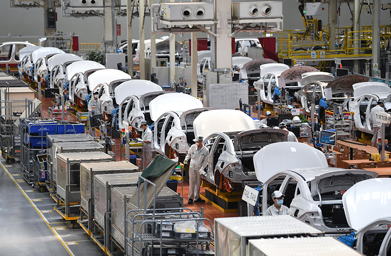 這是2023年2月24日在廣州市番禺區拍攝的廣汽埃安新能源汽車股份有限公司總裝生產線。
