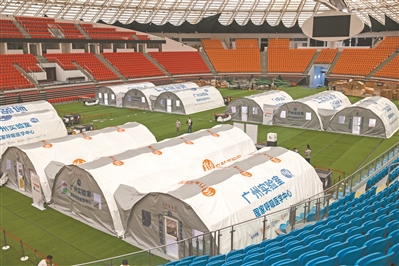 6月1日,在廣州體育館,廣東首個(gè)“獵鷹號(hào)”氣膜方艙實(shí)驗(yàn)室正式投入使用。隨著廣州金域醫(yī)學(xué)檢驗(yàn)中心有限公司通過采用總部中心實(shí)驗(yàn)室、“獵鷹號(hào)”氣膜實(shí)驗(yàn)室、“獵鷹號(hào)”移動(dòng)實(shí)驗(yàn)室(檢測(cè)車)“三位一體”的聯(lián)合作戰(zhàn)方式,將廣州地區(qū)的日檢測(cè)產(chǎn)能從26萬(wàn)管提升至35萬(wàn)管,每天可檢測(cè)350萬(wàn)人份,成為全球新冠核酸檢測(cè)日單產(chǎn)冠軍。