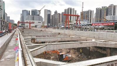 廣州加強交通樞紐建設,圖為地鐵基坑開挖。