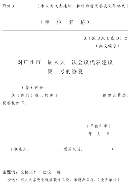 (四)市人大代表建議,由主辦單位綜合會辦單位意見后,將答復文件直接寄送提出建議的代表各1份,同時抄送市人大常委會選舉聯絡工委、市府辦公廳、會辦單位各1份。