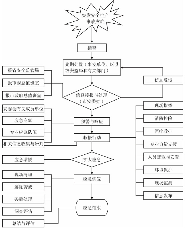 在市安委會的指導下,建立健全應對突發生產安全事故的預測預警、信息管理、應急處置、恢復重建等機制,提高應急處置能力和指揮水平。
