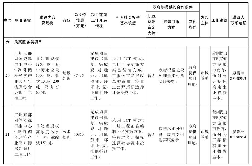 2.廣州市政府和社會資本合作試點項目(第一批)