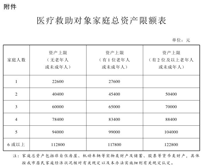附件:醫(yī)療救助對象家庭總資產(chǎn)限額表