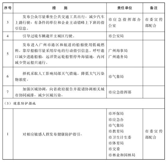 (6)提請(qǐng)區(qū)域聯(lián)動(dòng)。向省政府報(bào)告廣州市應(yīng)對(duì)環(huán)境空氣重污染的Ⅲ級(jí)應(yīng)急響應(yīng)情況,并提請(qǐng)省協(xié)調(diào)相關(guān)城市協(xié)同減排,減少區(qū)域污染。