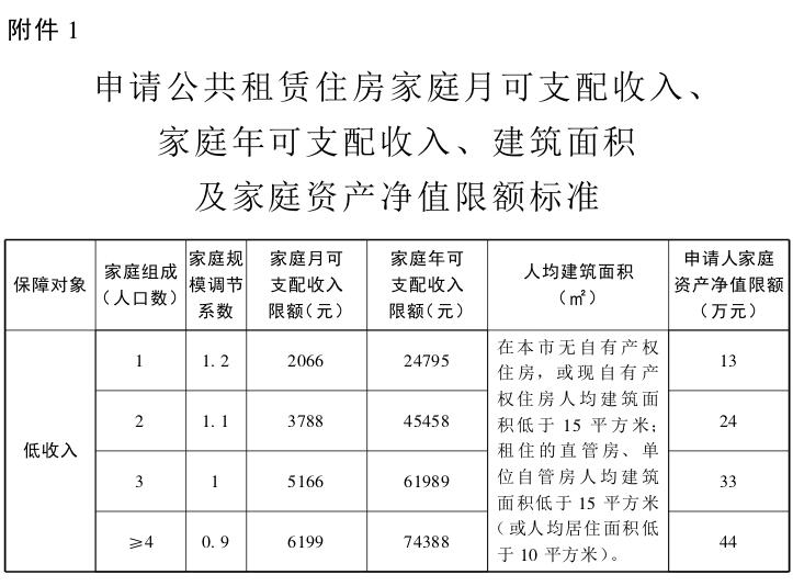 附件:1申請公共租賃住房家庭月可支配收入、家庭年可支配收入、建筑面積及家庭資產凈值限額標準