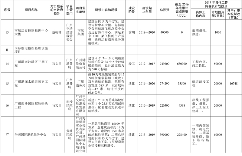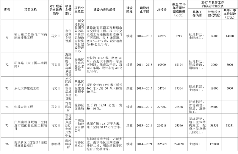 廣州市人民政府辦公廳關(guān)于印發(fā)市政府領(lǐng)導(dǎo)對口聯(lián)系重點(diǎn)項(xiàng)目工作機(jī)制和2017年市重點(diǎn)項(xiàng)目市政府領(lǐng)導(dǎo)分工方案的通知